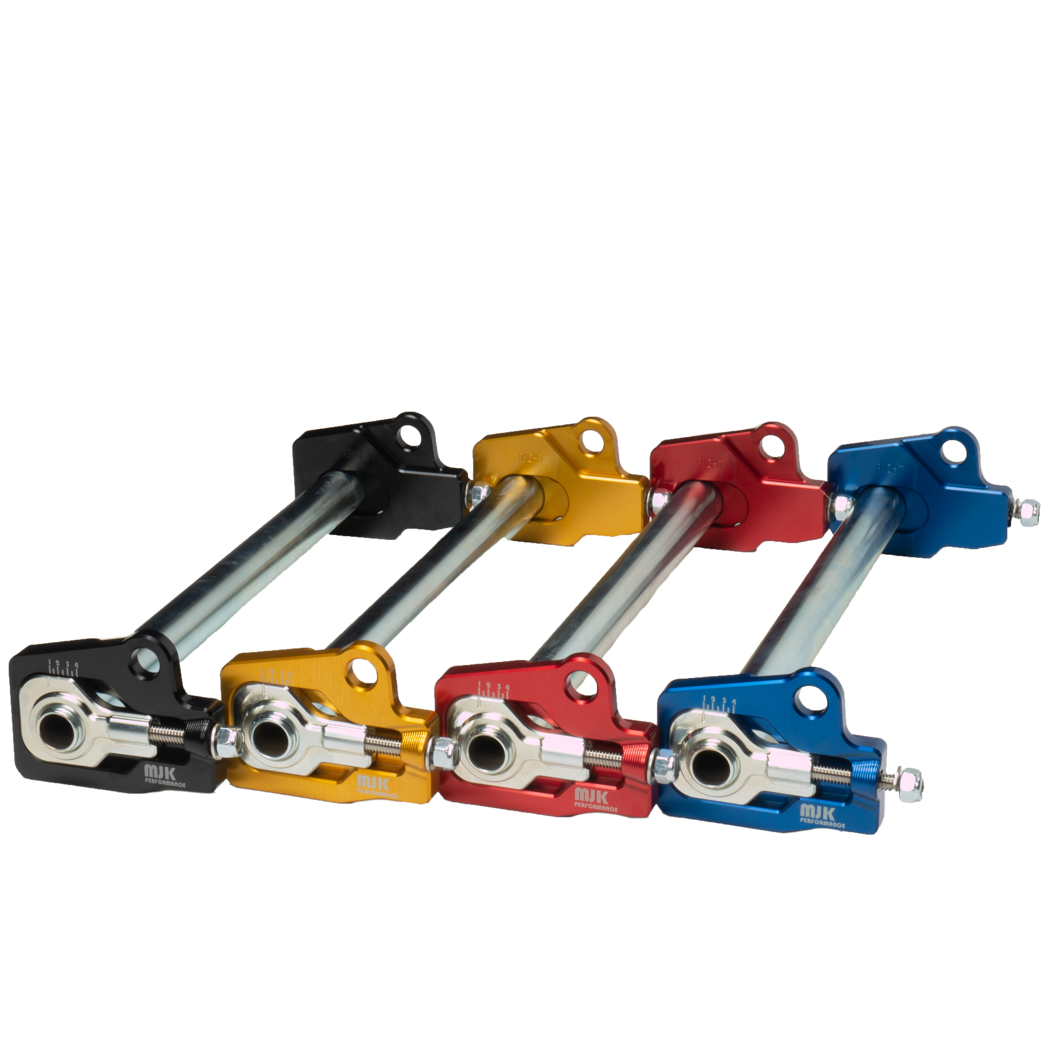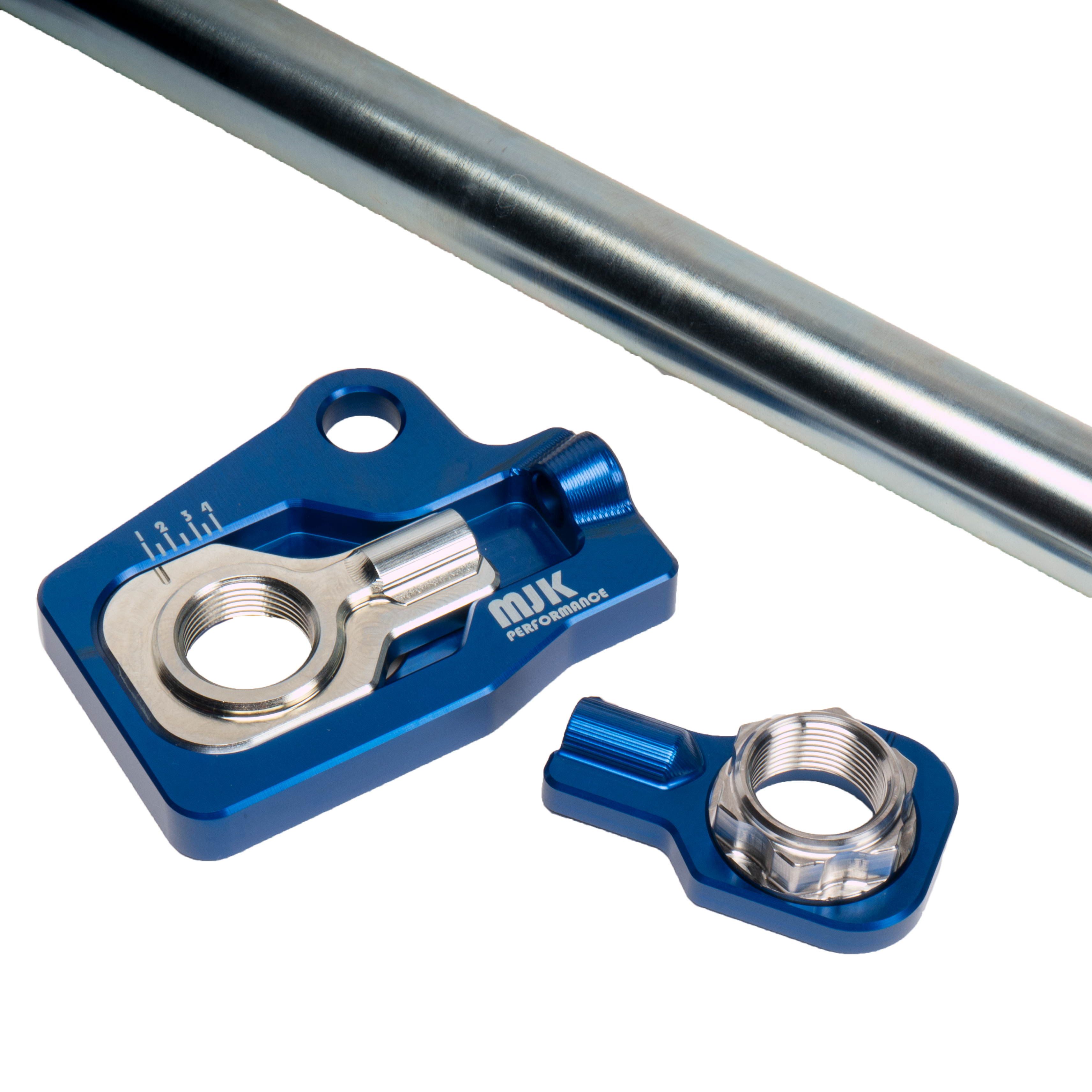 The new low profile axle adjusters are designed to be removed from the left side and now come with a stainless steel axle nut and 4130 Chromoly axle